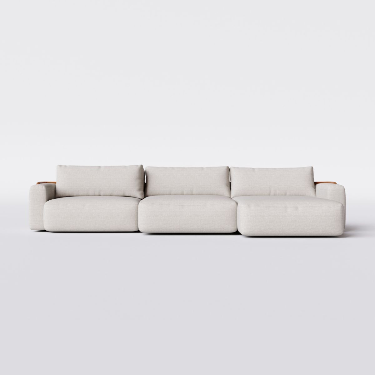 Largura total: 340 cm (1 mod c/braço de 117cm + 1 mod de 100cm + 1 chaise de 117cm + 6cm de acabamento)